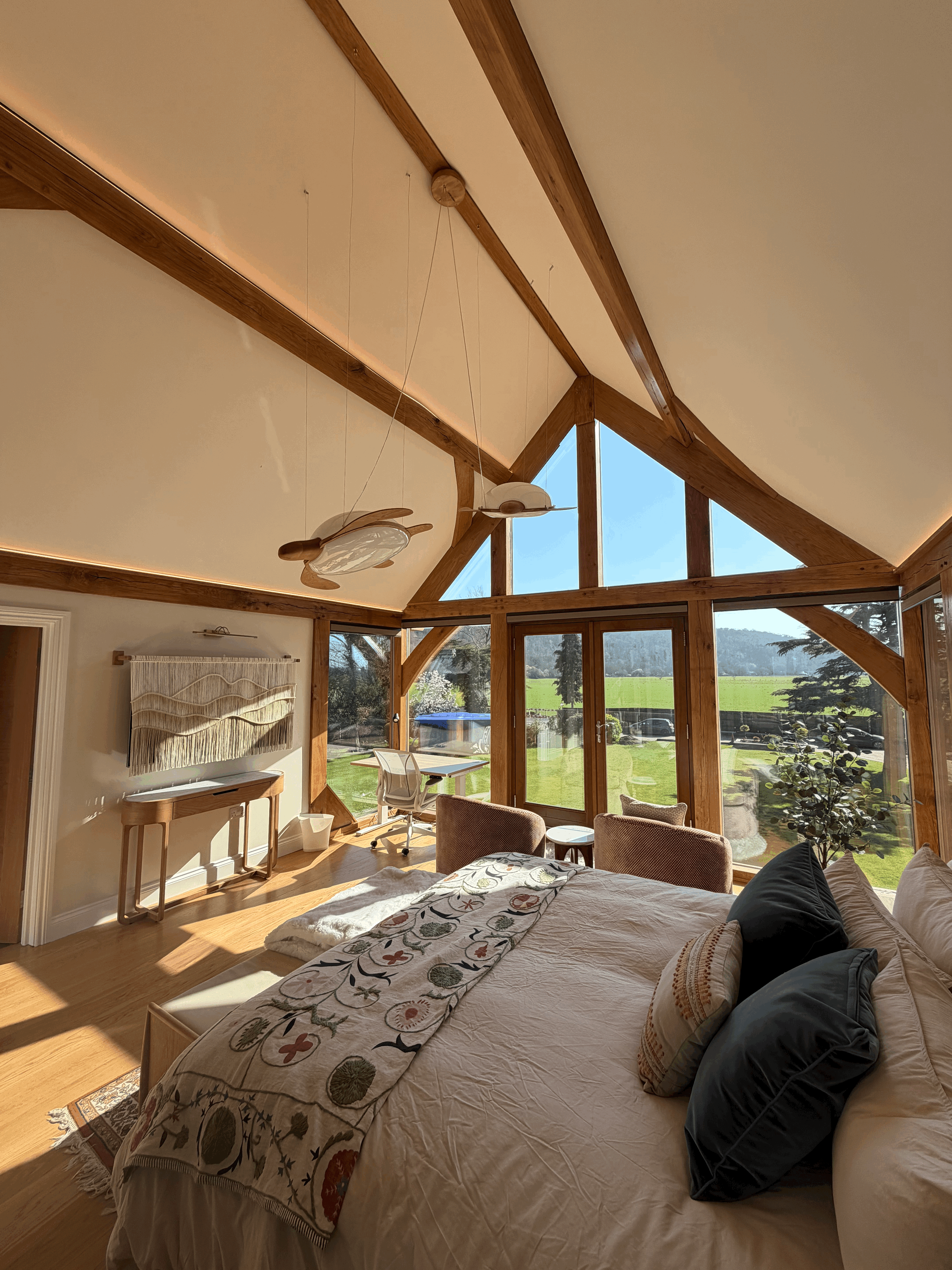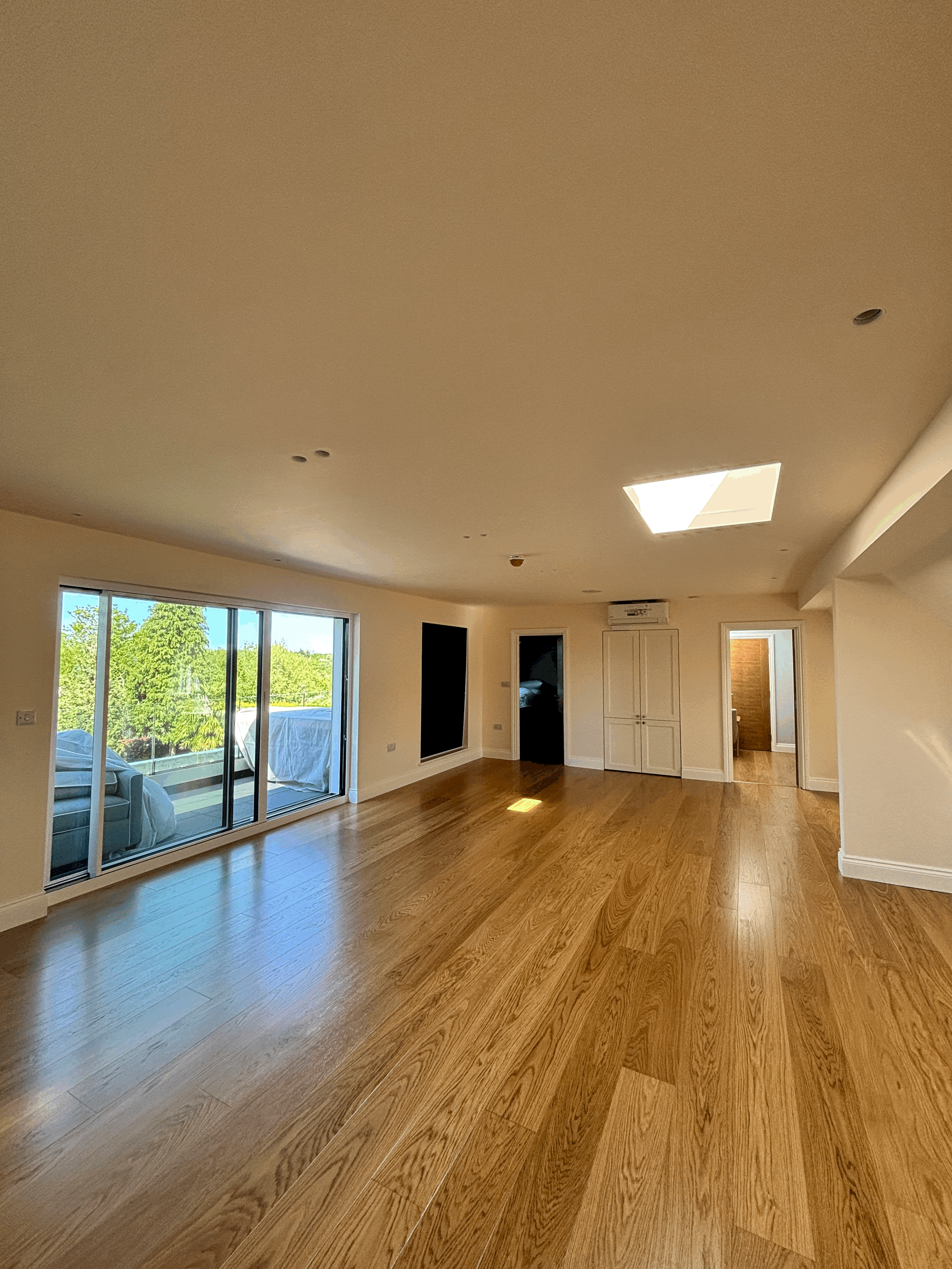 Complete interior and exterior finish on a newly built luxury residence. Scope included all interior decorating throughout, exterior cladding treatment, oak beam oiling inside and out, fascias and all external woodwork. A full property finish from ground up.